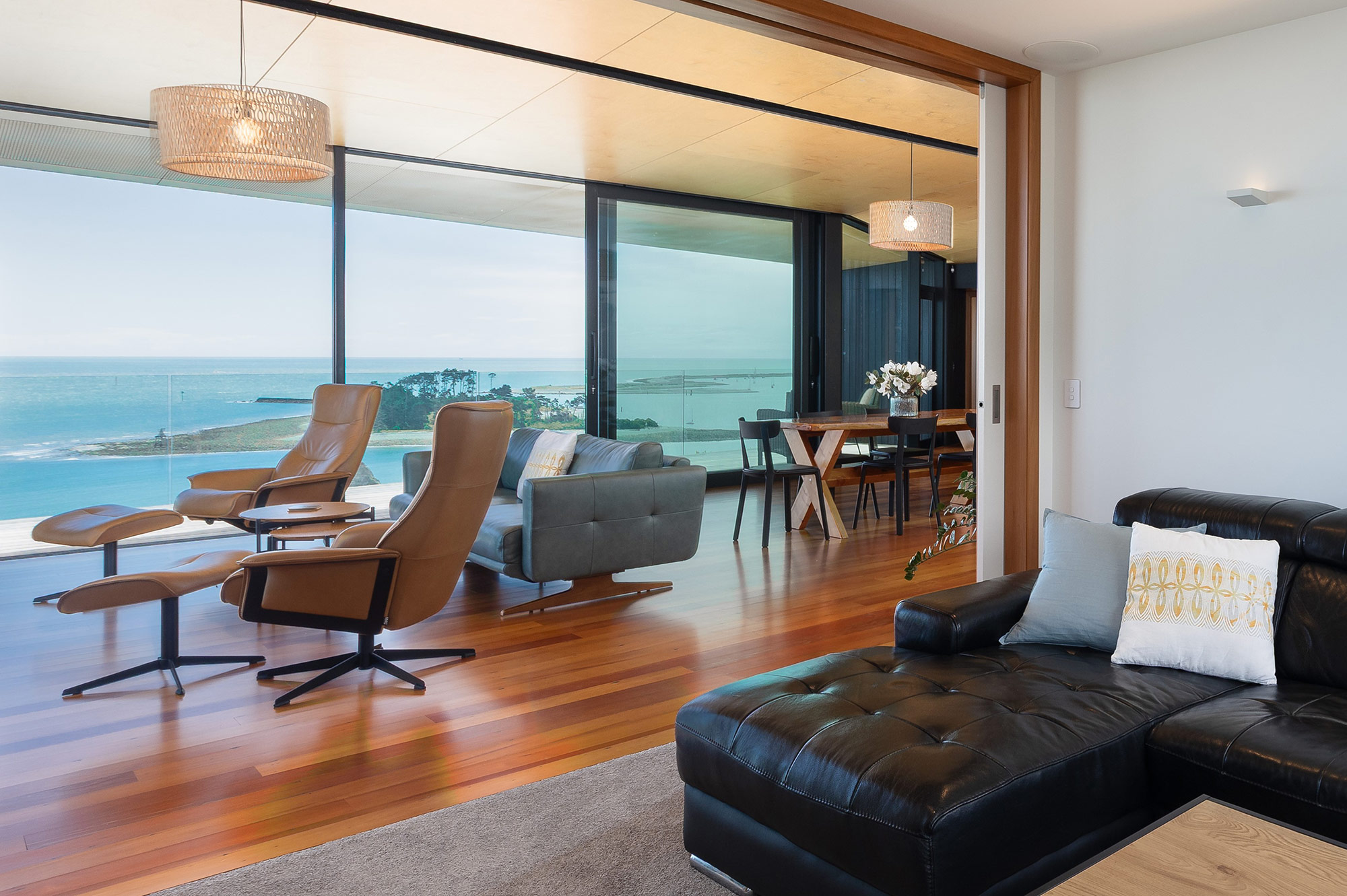 Winner of the Te Kāhui Whaihanga New Zealand Institute of Architects Award 2022, this residence offers more than architectural excellence — it promises a lifestyle of quiet luxury, privacy, and connection to one of New Zealand’s most breathtaking coastal vistas.