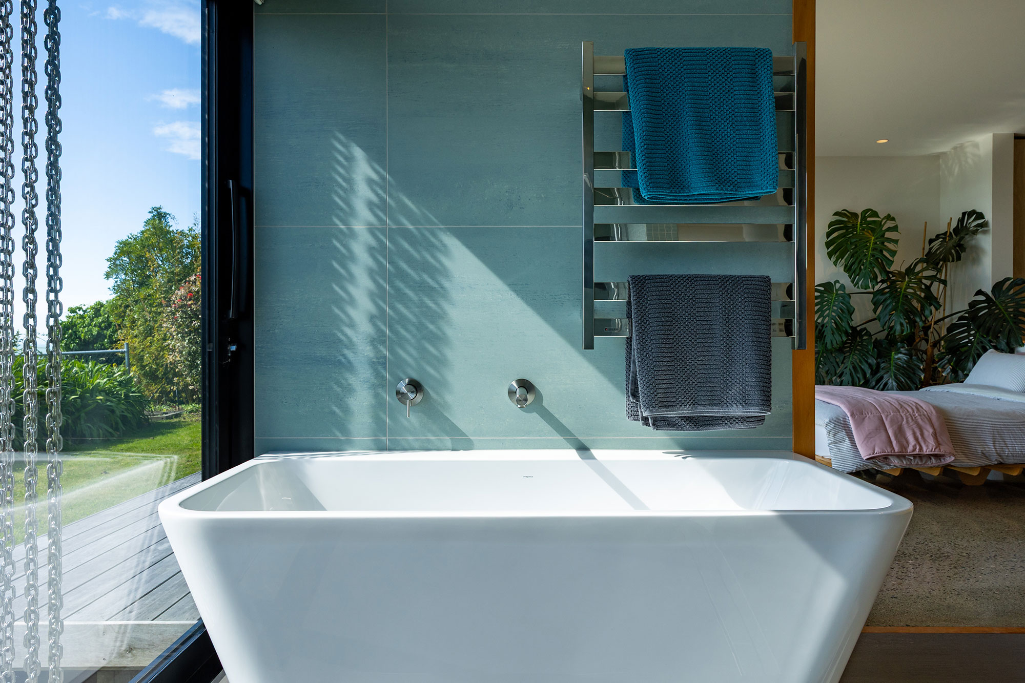 High levels of insulation and passive heating systems maintain ideal comfort in every season, and a moveable external sunscreen, allowing the occupants to adjust shade and privacy at the touch of a button.